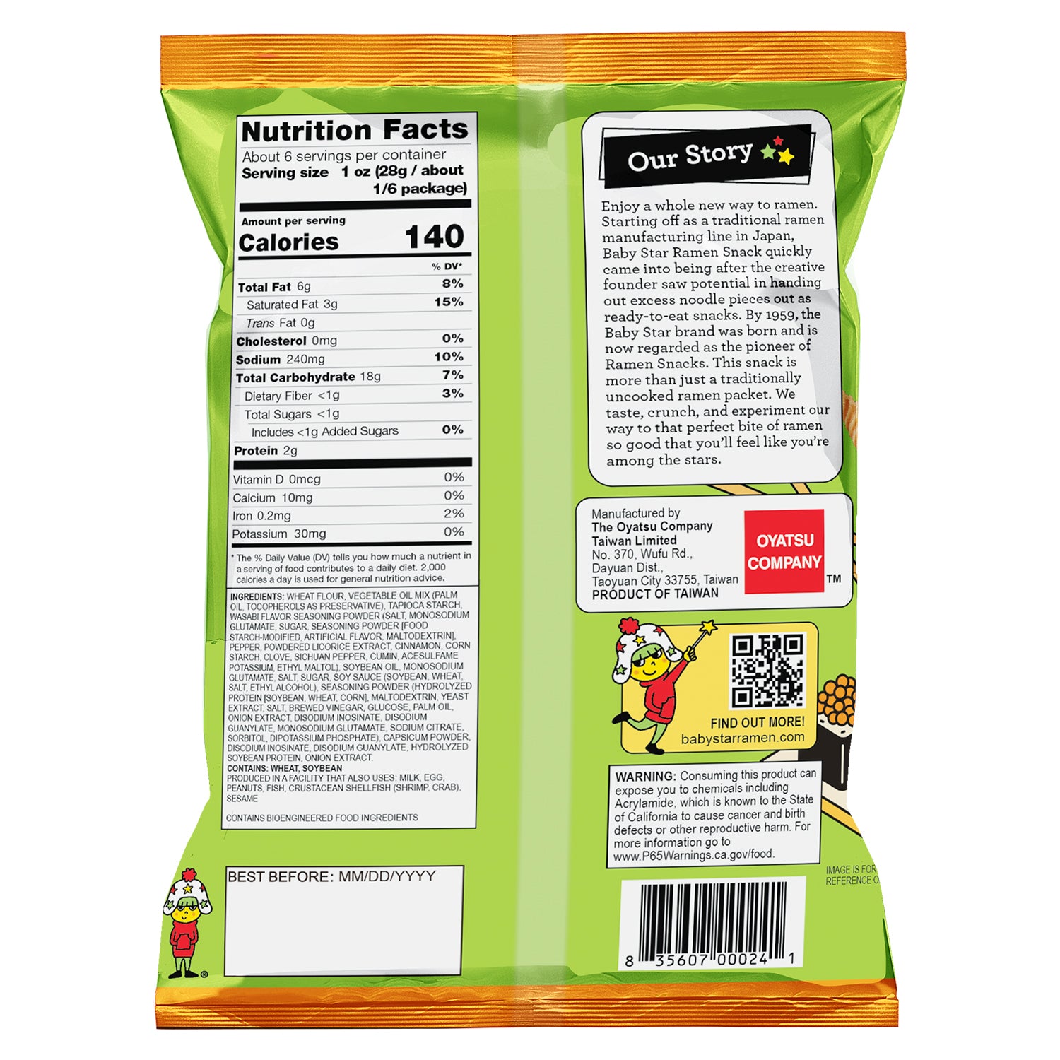 Experience the heat of our Wasabi ramen snack – an authentic, flavor-packed snack that delivers a satisfying kick with every bite. Whether you're a fan of fiery flavors or just looking to spice up your snack time, this crunchy snack will awaken your taste buds with its bold wasabi flavor.